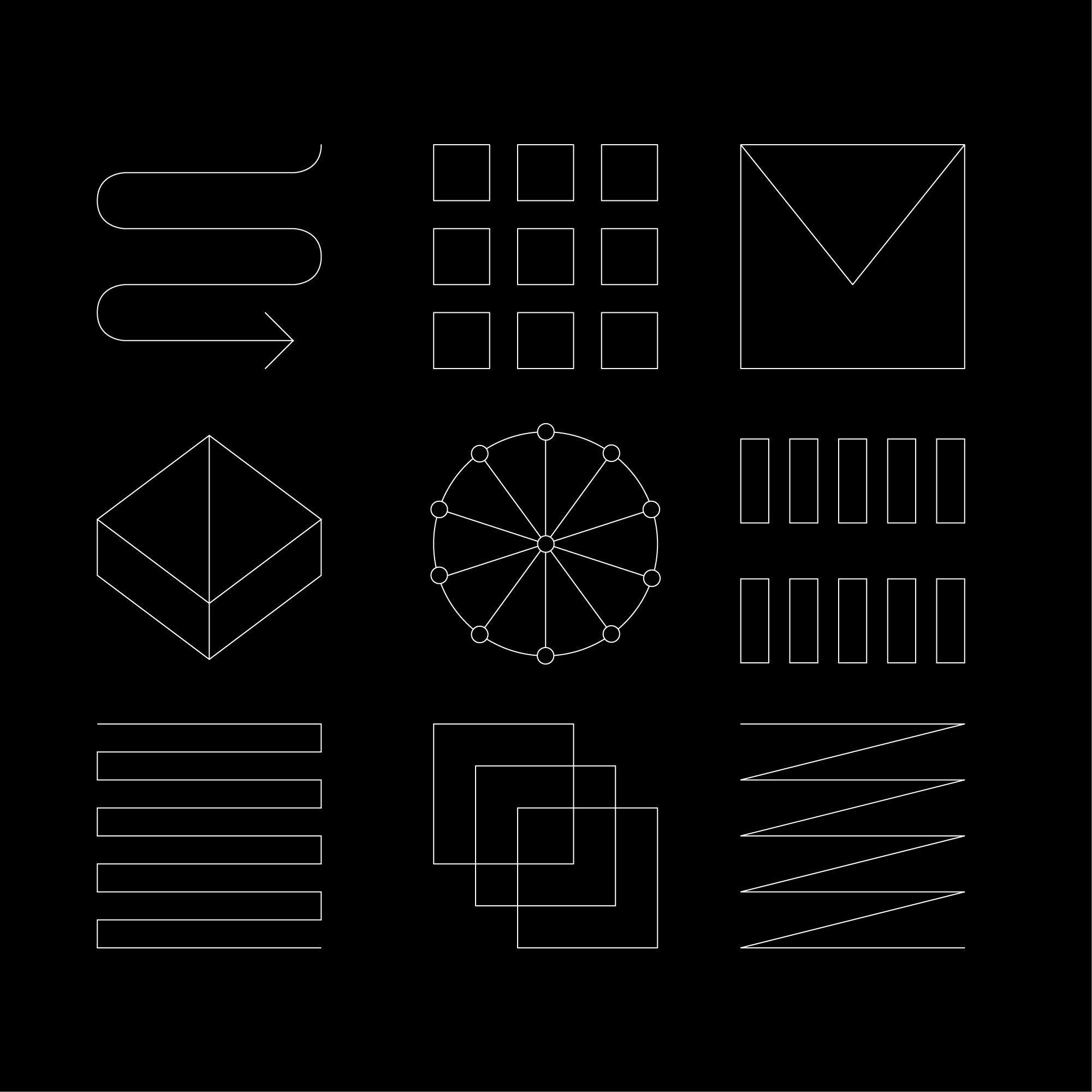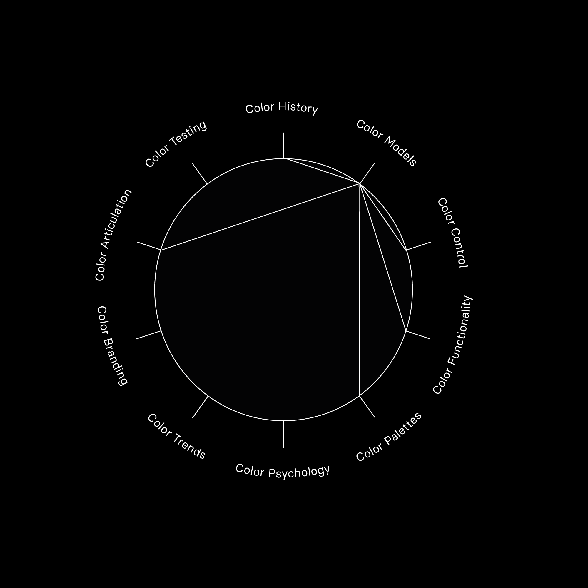 Dette konceptuelle greb sikrer et genkendeligt og stringent fundament for projektets modeller, figurer og ikoner. Ikoner og grafiske elementer er designet med en tynd hvid streg på en sort baggrund – en æstetik, der både trækker på en tidlig computeræstetik og understøtter projektets bæredygtige fokus. Den sorte farve reducerer skærmenergiforbruget. Animationer er også en del af identiteten og bruges til at visualisere farvecirklen på en dynamisk og interaktiv måde.