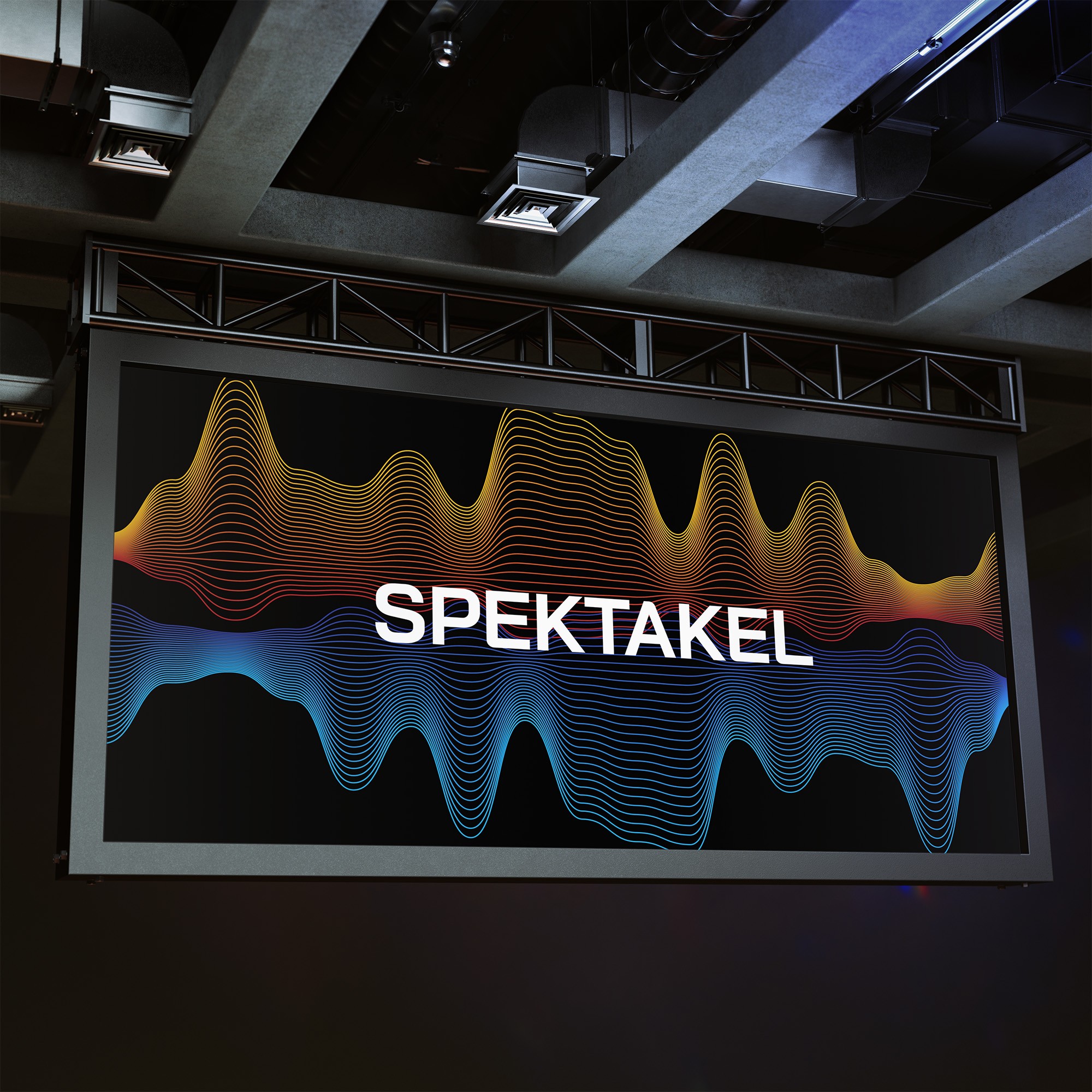 Til eventet SPEKTAKEL blev der udviklet en enkel men markant visuel identitetsgrafik, bestående af et digitalt mønster og en typografisk retning. Identiteten er bygget op omkring en kompleks grafik: et tætvævet system af bølgede linjer i kontrastfarverne flammende orange og isblå.