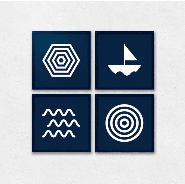 Mit fokus har været på simpel grafik, der fanger havets ro og styrke med rene linjer og klare farver i dette projekt, hvor jeg skulle lave 4 sammenhængende billeder til en offentlig væg.